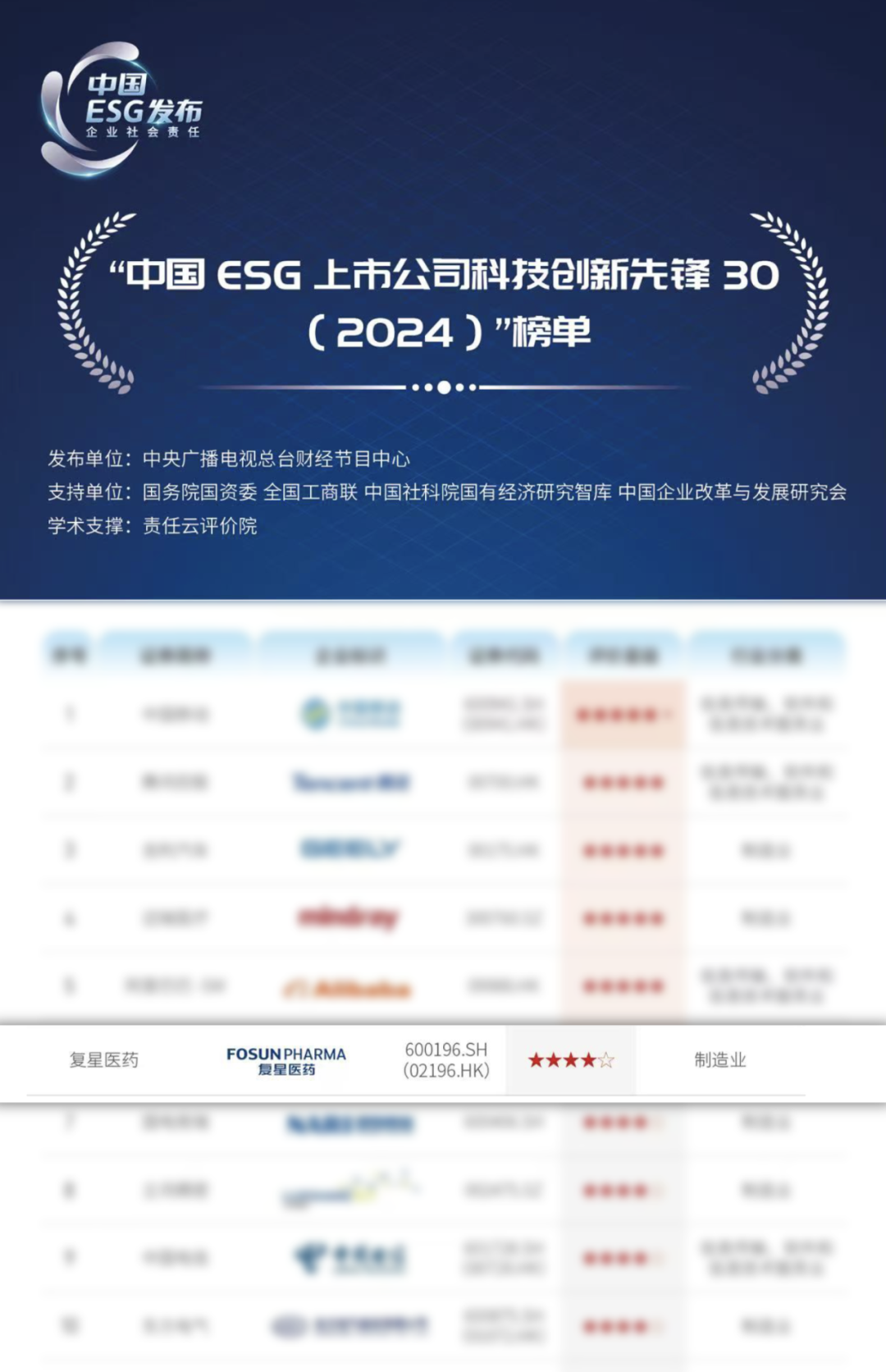 千赢国际医药入选“中国ESG上市公司科技创新先锋30”