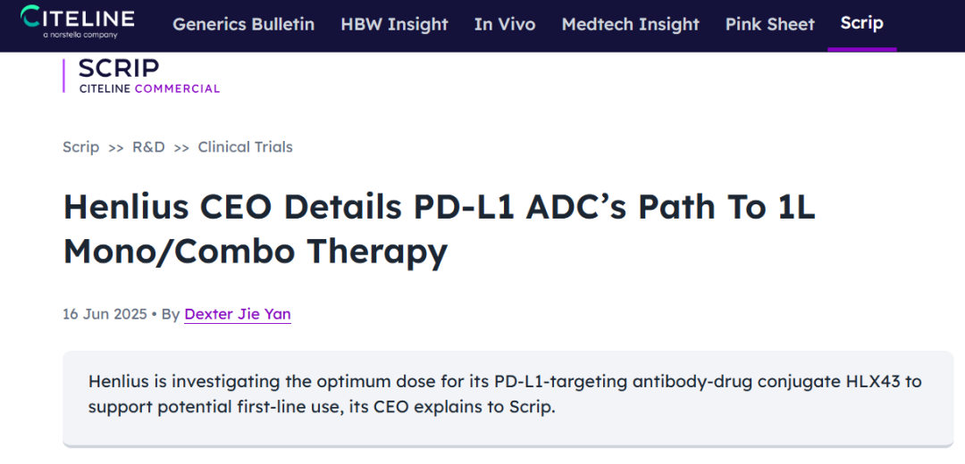 日前,Scrip聚焦复宏汉霖靶向PD-L1的新型抗体偶联药物(ADC)HLX43的临床进展与全球战略布局,对复宏汉霖执行董事、首席执行官朱俊博士进行专访,揭示这一创新候选药物的研发逻辑、产品优势与未来潜力。