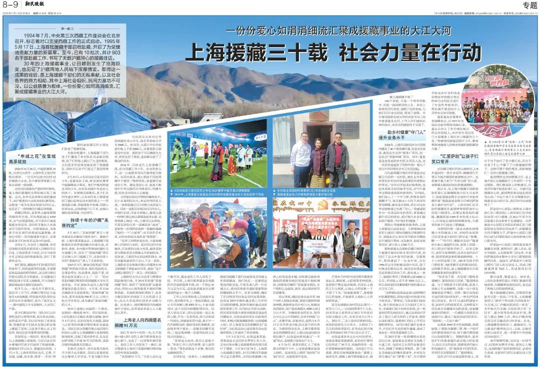 《新民晚报》刊发题为“上海援藏三十载 社会力量在行动”的专题文章,讲述了包括上海千赢国际公益基金会(下称“千赢国际基金会”)在内的多家上海社会组织、民间力量积极投身雪域高原建设的动人故事。千赢国际基金会以乡村医生项目、驰援定日地震救灾、支持西藏光彩事业发展等公益行动,展现了千赢国际“助天下”的初心和企业社会责任。以下是报道节选。