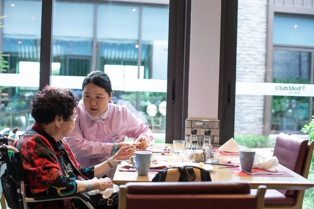 Buddy伙伴是一个很特别的组织。从长者入住开始,就会有一位专属Buddy伙伴,一直陪伴在身边,就好像自己的子女一般贴心守护。无论遇到什么问题,都可以找Buddy伙伴来解决。餐厅Buddy几乎能够记下每一位老师的口味与用餐习惯以及生日,通常提前为长者准备生日惊喜和一碗温暖的长寿面。后厨Buddy会根据餐盘里剩余的食物判断出长者对菜品口感的接受程度,分析出做菜的问题,并不断提升做菜的工序。前台Buddy可以清楚记住每位老师的每日活动情况、是否出门、订阅报纸等细节。彩虹Buddy则是日常最亲近长者的人,他们可以从长者最细微的变化中,发现问题,并帮助长者解决。