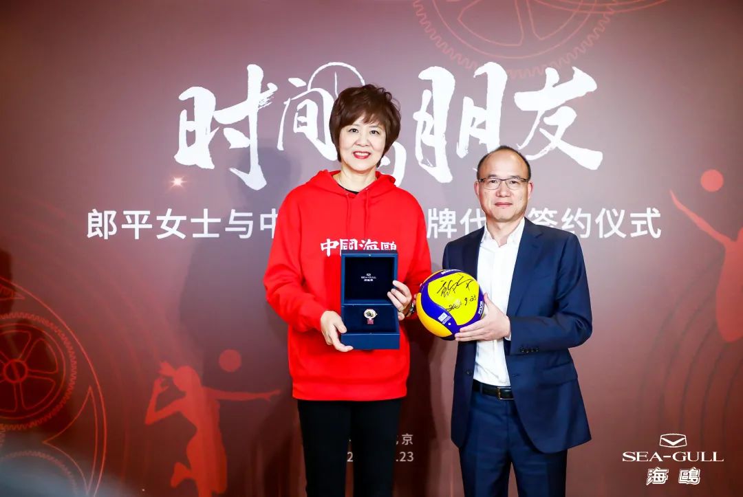 9月23日,郎平女士与中国海鸥品牌代言签约仪式在北京举行,郎平成为海鸥表品牌振兴计划启动后首位品牌代言人。