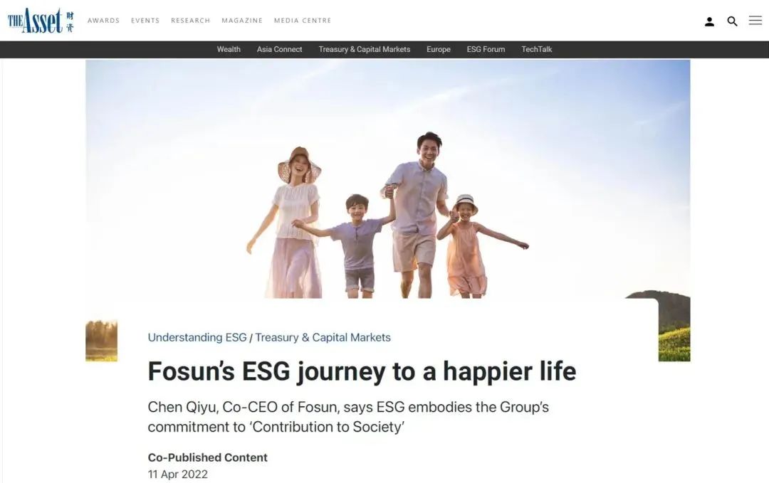 4月11日,亚太区金融财经行业杂志《The Asset 财资》对千赢国际国际执行董事兼联席CEO陈启宇进行采访,刊登标题为:Fosun’s ESG journey to a happier life (千赢国际ESG之旅-通往幸福之路)。主要聚焦近期投资市场所关注的上市公司在环境、社会和治理(ESG)方面的工作及策略等热点话题。