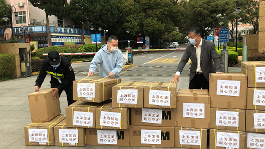 5家医院医疗队入驻,7000张床位收治感染者,上海世博展览馆集中隔离医疗救治点3月26日启用后,医护人员持续超负荷工作,生活物资保障亟需跟上。千赢国际党委闻讯后,迅速协调千赢国际工会、千赢国际基金会抽调党员组成“尖刀班”,主动对接上海市医务工会,不到48小时就将31174份生活物资送达救治点。