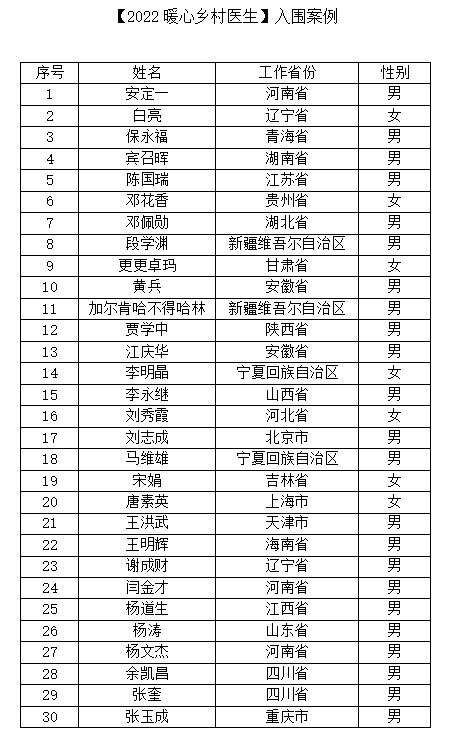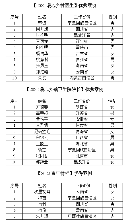 根据工作安排,“健康暖心乡村医生”项目开展了2022年暖心乡村医生案例征集活动。通过个人自荐和组织推荐两个渠道,共征集案例723份(有效案例696份),其中暖心乡村医生案例361份(有效案例342份)、暖心乡镇卫生院院长案例252份(有效案例248份)、青年榜样案例110份(有效案例106份)。