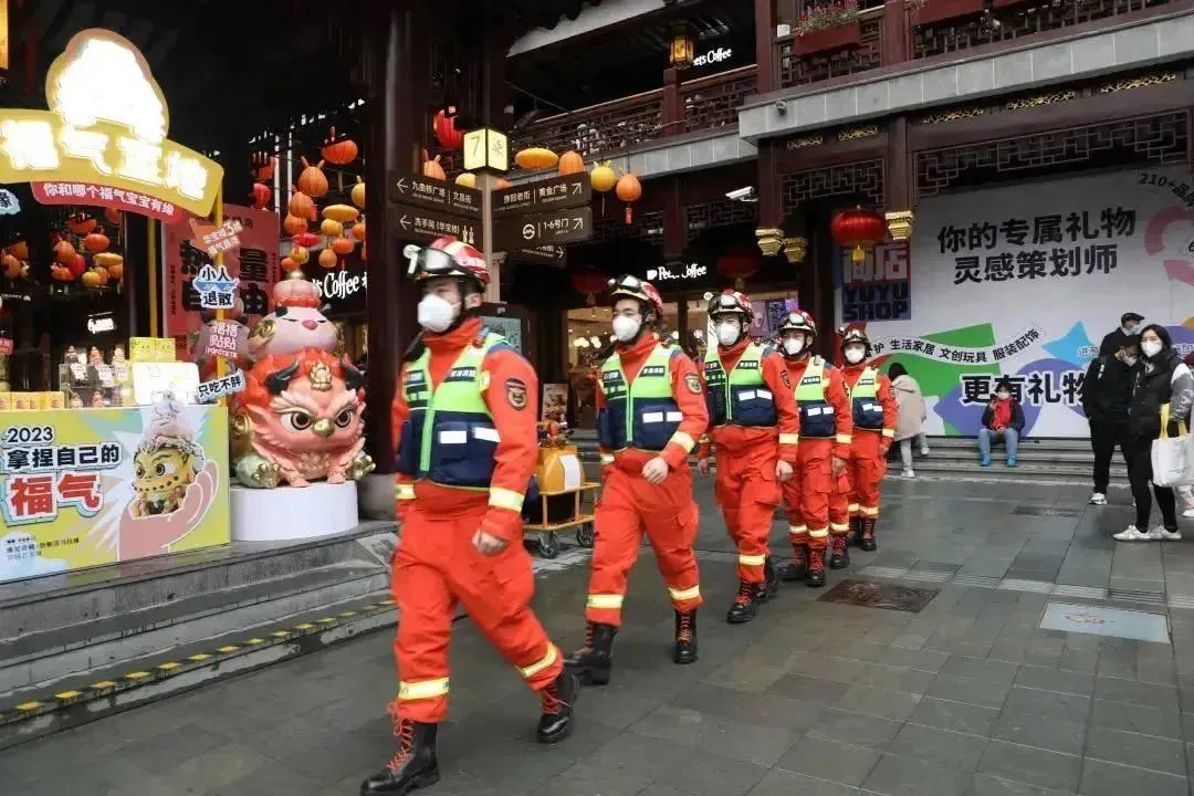 而在璀璨生辉、人潮涌动的背后,也有一批人放弃与家人团聚,隐没在人群和灯影中。这些人的名字很简单,叫公安、武警、消防、城管、应急、绿容……身处美丽灯海中,他们无暇观赏,只为守护人群中的那个“你”“我”“他”。