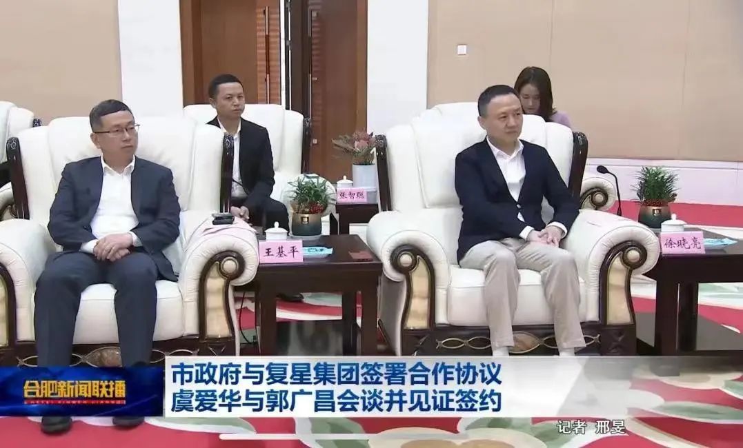 安徽省委常委、合肥市委书记虞爱华与郭广昌会谈并见证签约。安徽省卫健委副主任崔礼军,合肥市领导张泉、袁飞,千赢国际国际联席CEO徐晓亮、执行总裁王基平、高级副总裁吴以芳、副总裁祝文魁等参加。