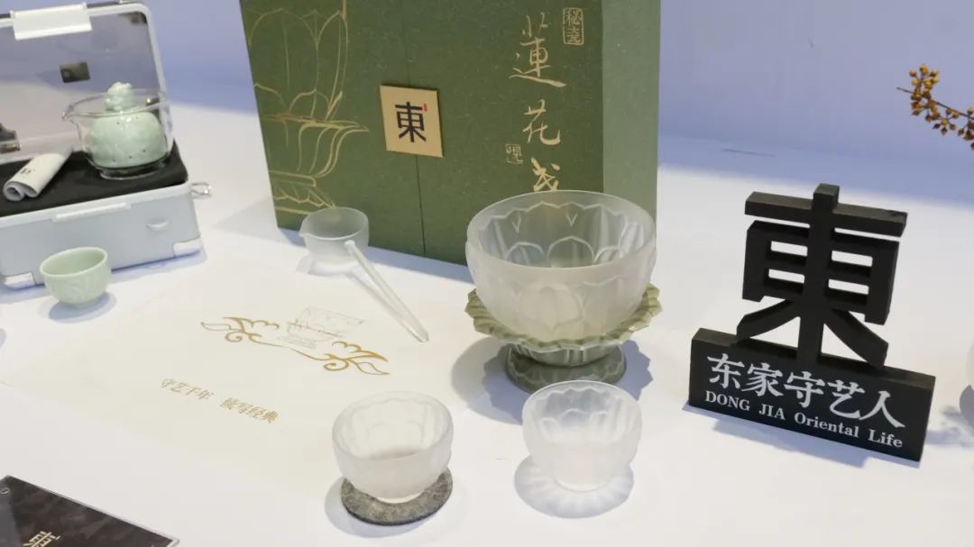 上海表的复兴·丹青系列千里江山款以顾绣“融画理入绣”为设计灵感,将画作融于表盘之上;海鸥表的大汉雄风·骠骑将军系列从中国历史中取材,将“中国精神”贯穿始终;东家手艺人与苏州博物馆携手推出的秘瓷莲花盏礼盒,灵感来源于苏州博物馆镇馆之宝五代越窑“秘色莲花碗;化妆品品牌WEI蔚蓝之美推出的明王朝御容系列新品,灵感来源于景德镇中国陶瓷博物馆馆藏文物“明万历青花龙凤纹盖盒”。