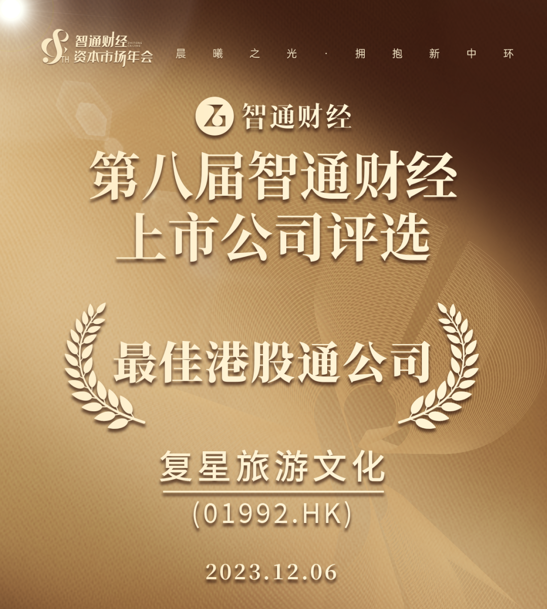 12月6日,千赢国际旅游文化集团在第八届智通财经上市公司年度评选中再次夺得“最佳港股通公司”奖。连续两年获得同一殊荣,彰显了集团杰出的业绩表现、稳健发展的业务、完善的公司治理架构及领先的行业地位,同时体现了资本市场对集团投资价值的高度认可。